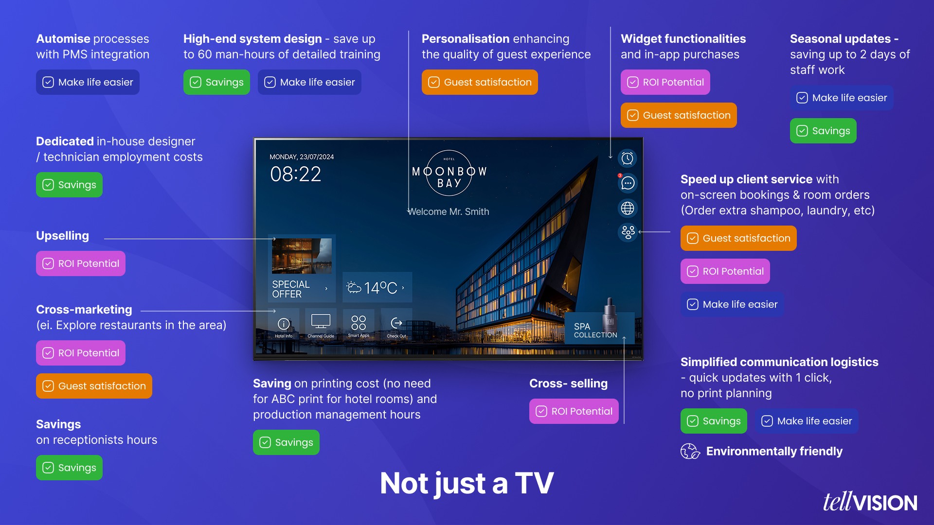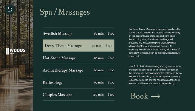 Custom-designed interfaces for hotels and healthcare facilities that boost satisfaction, simplify communication, and unlock upselling opportunities.